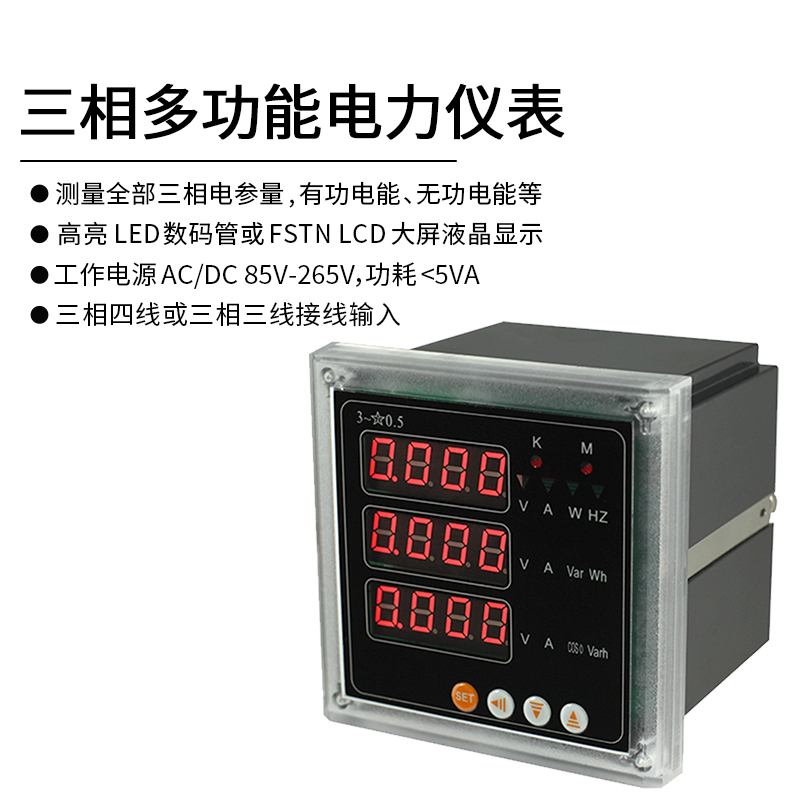 (1) 諧波復(fù)費(fèi)率多功能電力儀表,一種具有可編程測量、顯示、RS485數(shù)字通訊和電能脈沖輸出的多功能智能電力儀表;
